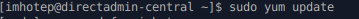Il vous suffit d'ajouter sudo avant votre commande et de confirmer votre mot de passe. Dans notre image, la commande est yum update et nous ajoutons sudo devant celle-ci pour l'exécuter en tant que root