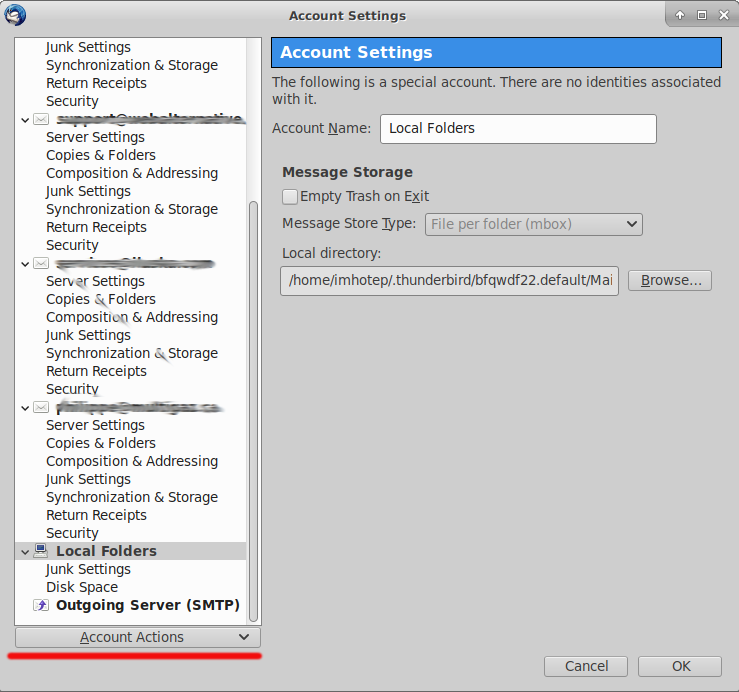 Si le compte e-mail existe déjà sur votre ordinateur dans le logiciel Thunderbird, vous devez commencer par effacer le compte existant dans votre logiciel pour éviter les conflits.